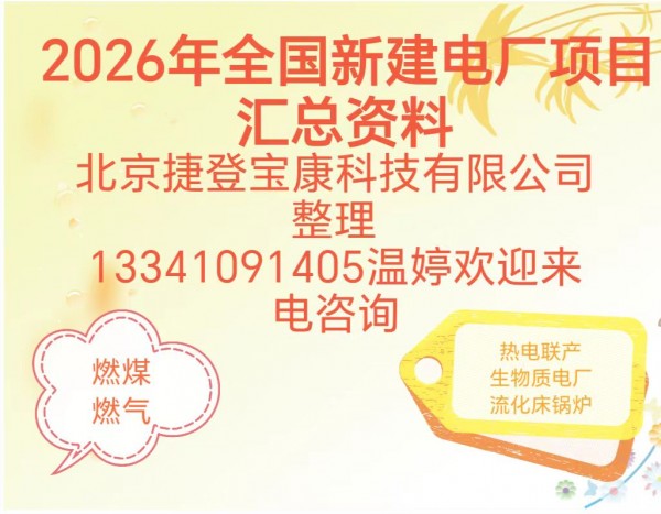 北京捷登宝康科技有限公司整理出《全国电厂项目汇总资料》,本资料适用于电力辅机设备厂商,电力施工企业,电力材料供应商,电力设计院推广业务使用。《全国电厂项目汇总资料》